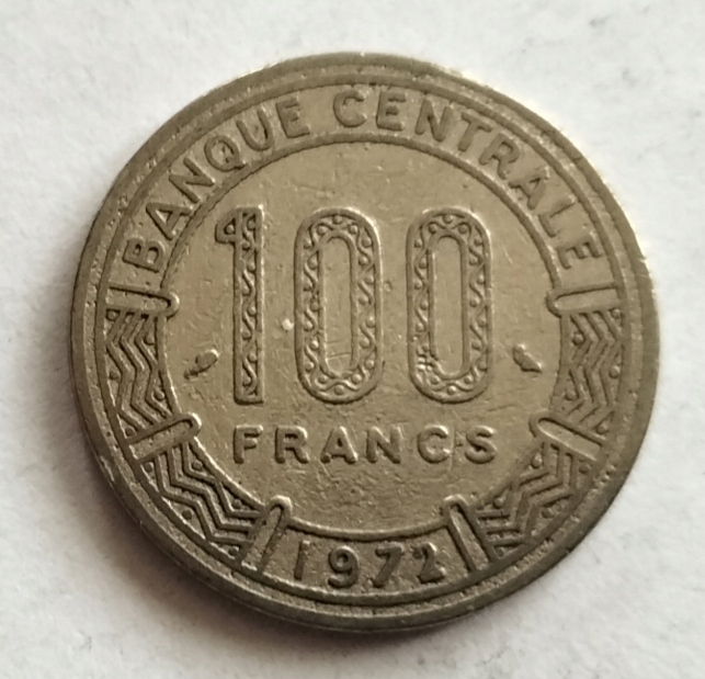 Монета Конго 100 франков 1972 года.