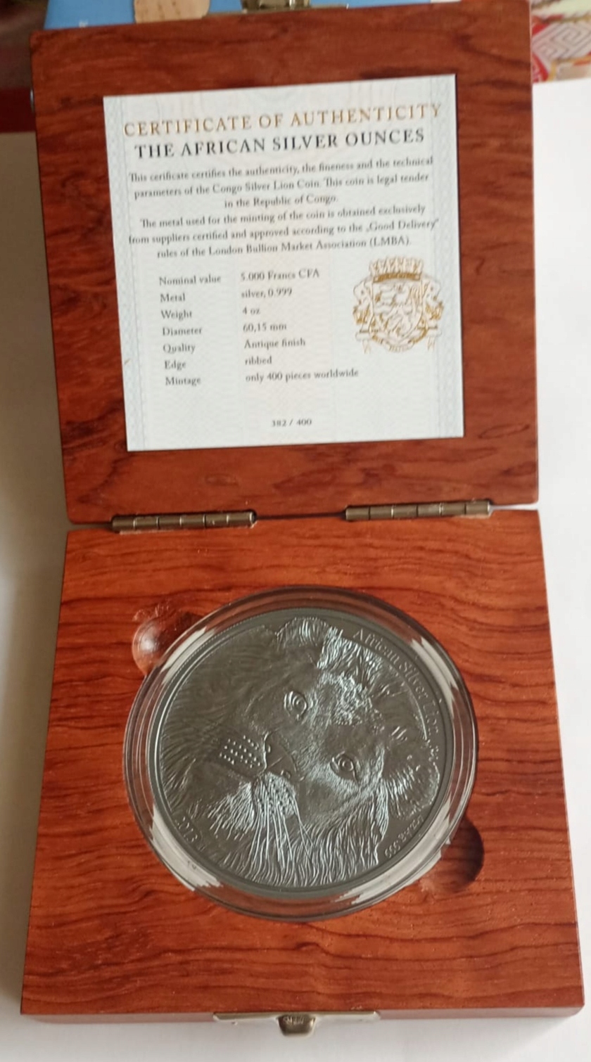 Moneta srebrna 4 x uncja srebra AFRICAN LION 4 Oz 2013 r. Nakład 400 szt.