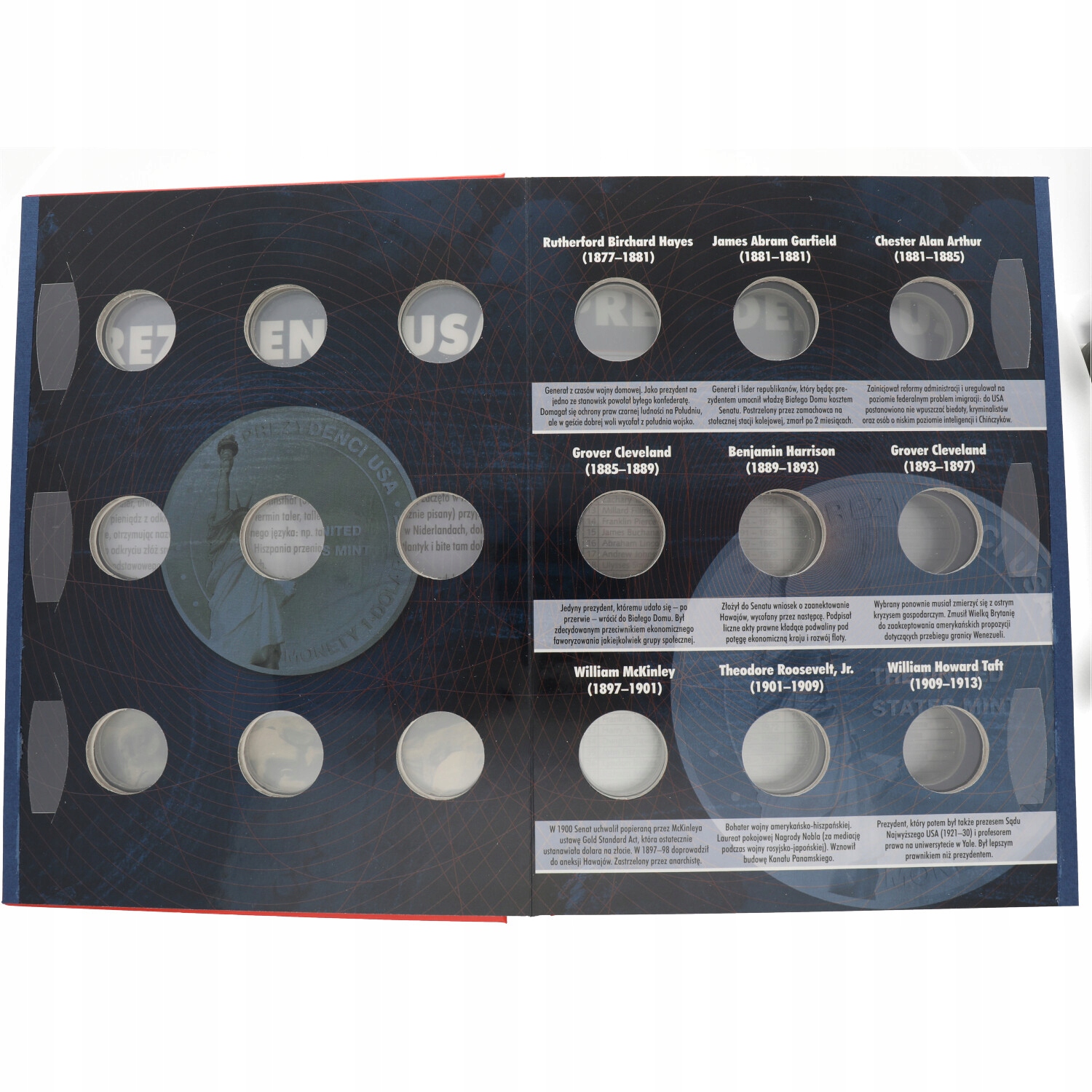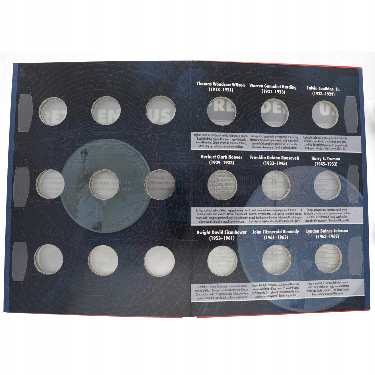 Внутри место для 45 президентов США, с краткими историческими заметками.