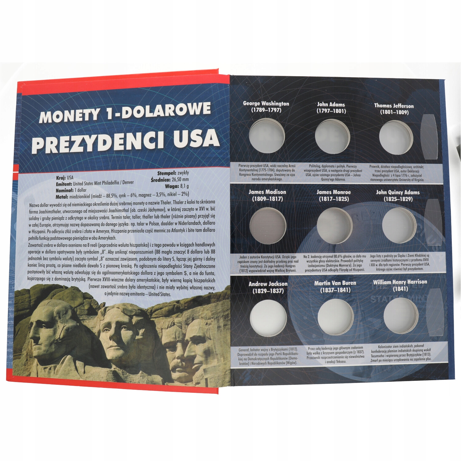 Альбом для монет 1 доллар США с изображениями президентов.