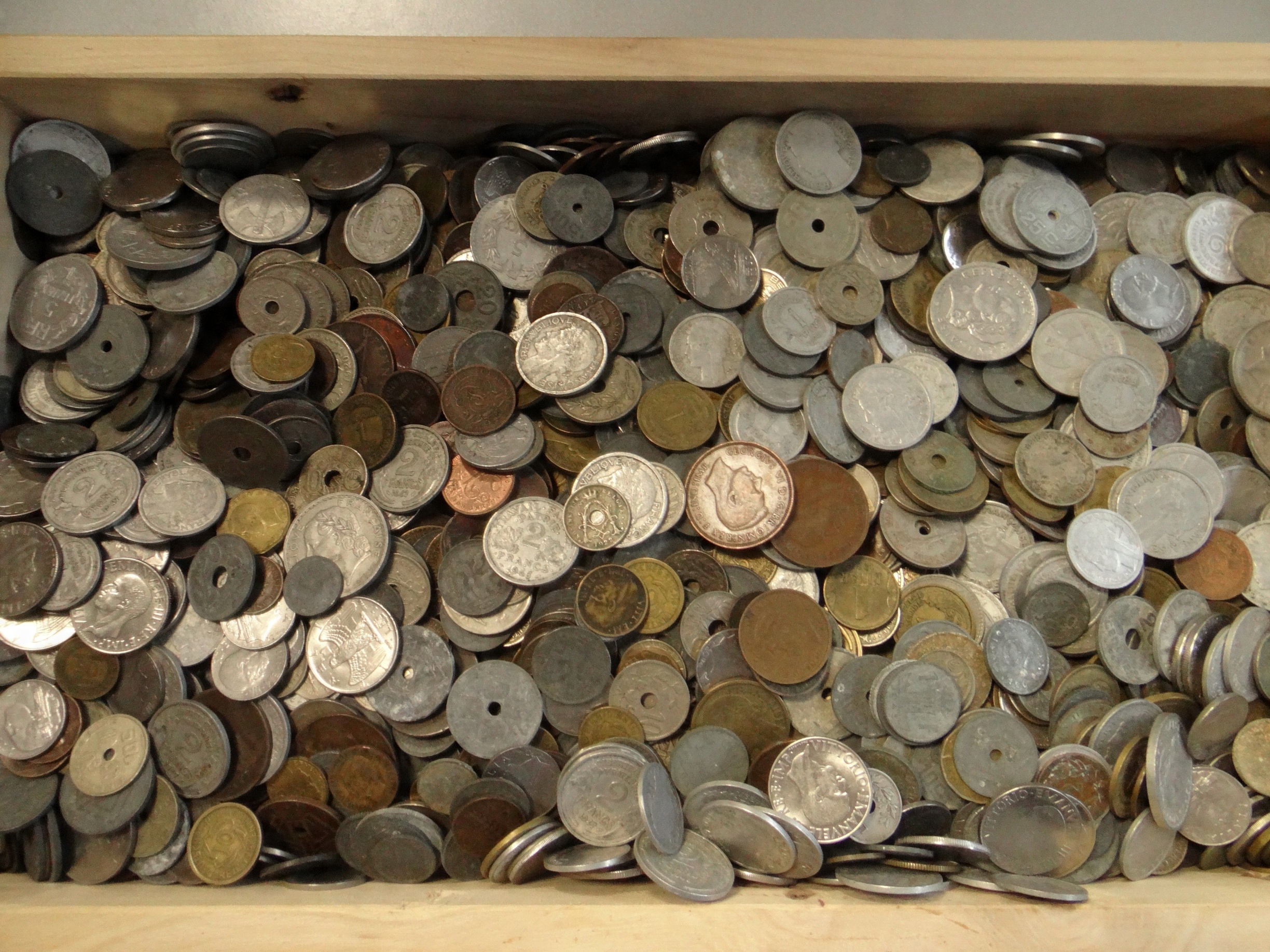 Там могут быть монеты, в том числе, из Бельгии, Италии, Франции, Англии, Германии, Испании и многих других.