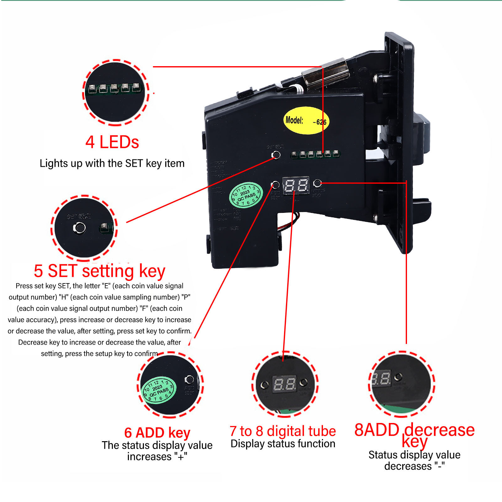 5. ПРЕМИУМ МАТЕРИАЛ: Электронный монетоприемник изготовлен из высококачественного пластика и фурнитуры, он прочен, устойчив к ржавчине и износу и имеет длительный срок службы.