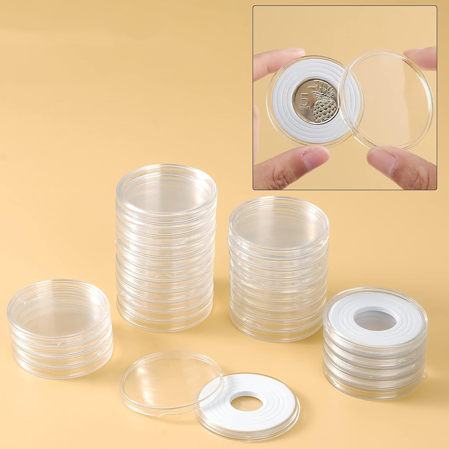 🪙 Высококачественное кольцо для монет: Круглое кольцо для монет изготовлено из прозрачного, утолщенный пластик, пыленепроницаемый и устойчивый к антиоксидантам, с серповидным отверстием для удобного открытия монетницы. ПРИМЕЧАНИЕ. Перед покупкой подтвердите размер монеты.