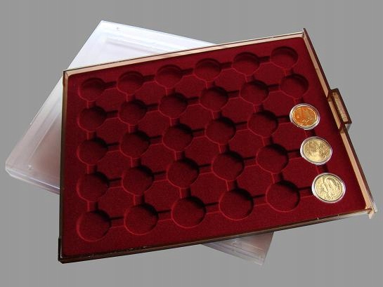 Высококачественная монетница SCHULZ — лучший и самый надежный способ хранения вашей коллекции монет. Эта престижная кассета PO-30 GN имеет 30 круглых отверстий диаметром 32 мм, что позволяет хранить памятные монеты: например, 2 Nordic Gold в капсулах, а также подходит для монет номиналом 2 евро и других.
