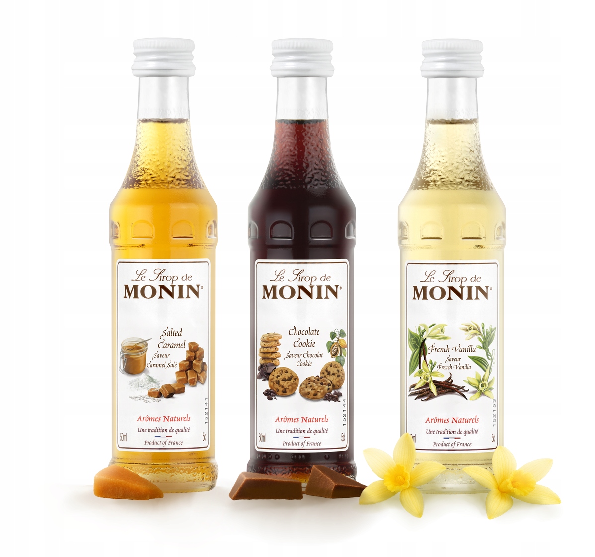 В мини-наборе MONIN эти вкусы образуют гармоничное трио – концентрированное, гармоничное и идеально сбалансированное. Достаточно нескольких капель, чтобы изменить ваш латте, капучино, фраппе или молочный десерт.