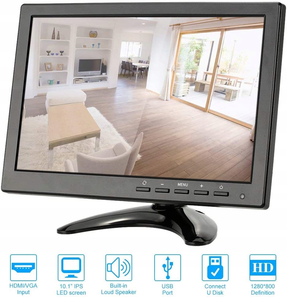 Высокое разрешение:10,1-дюймовый светодиодный экран IPS, собственное разрешение HD 1280*800, разрешение обеспечивает отличную детализацию, поэтому его можно идеально использовать в качестве монитора видеонаблюдения, монитора компьютера или внутреннего монитора. Вы также можете использовать экран в качестве экрана мини-телевизора, фотосканера или видеодисплея.