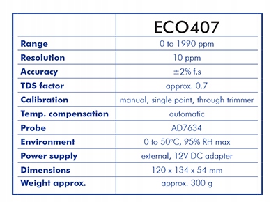 Монитор Adwa ECO407/контроллер TDS: от 0 до 1990 частей на миллион