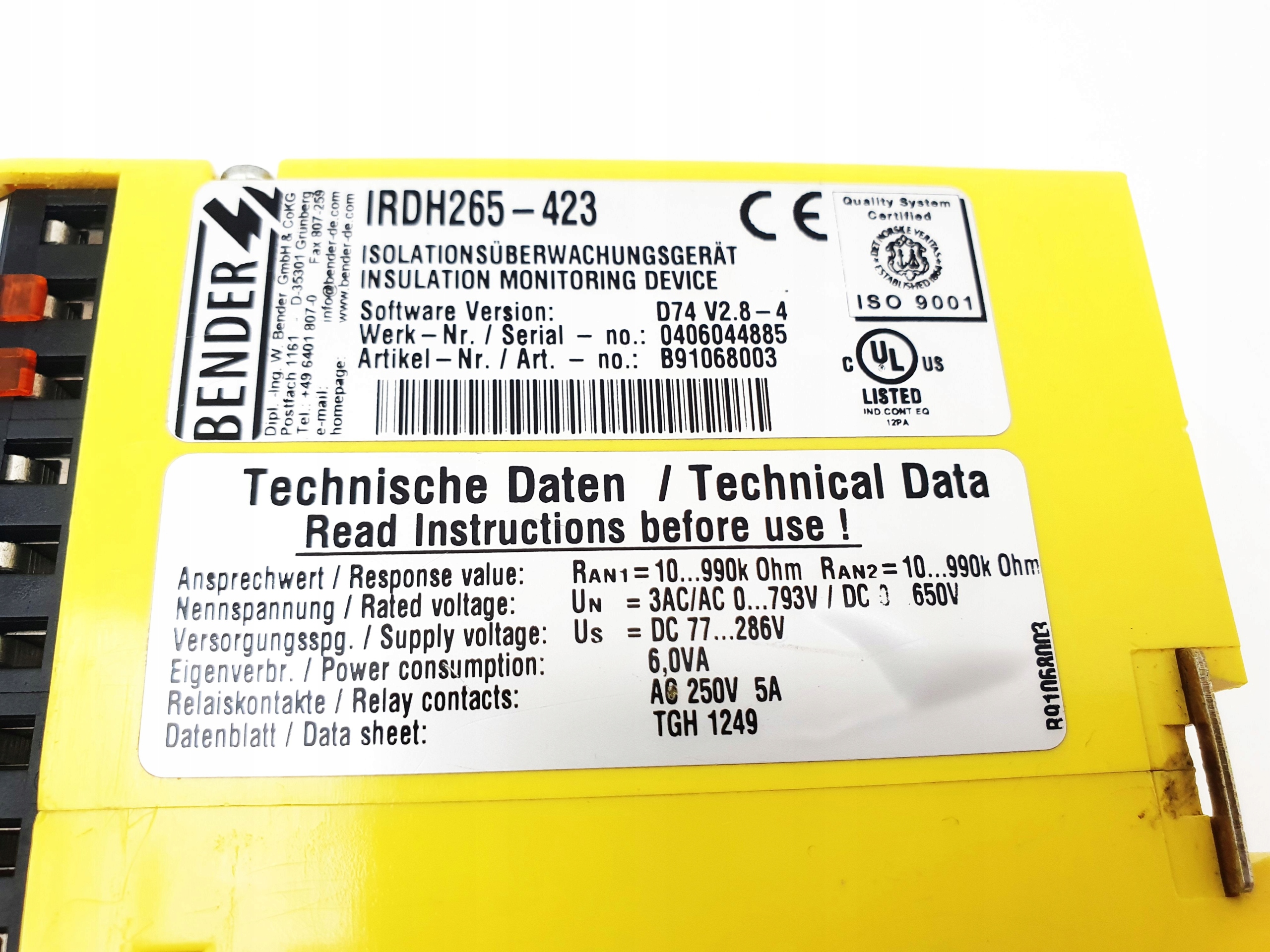 МОНІТОР BENDER A-ІЗОМЕТРА СЕРІЯ 260 IRDH265-423 IRDH265 IRDH265423 IRDH 265