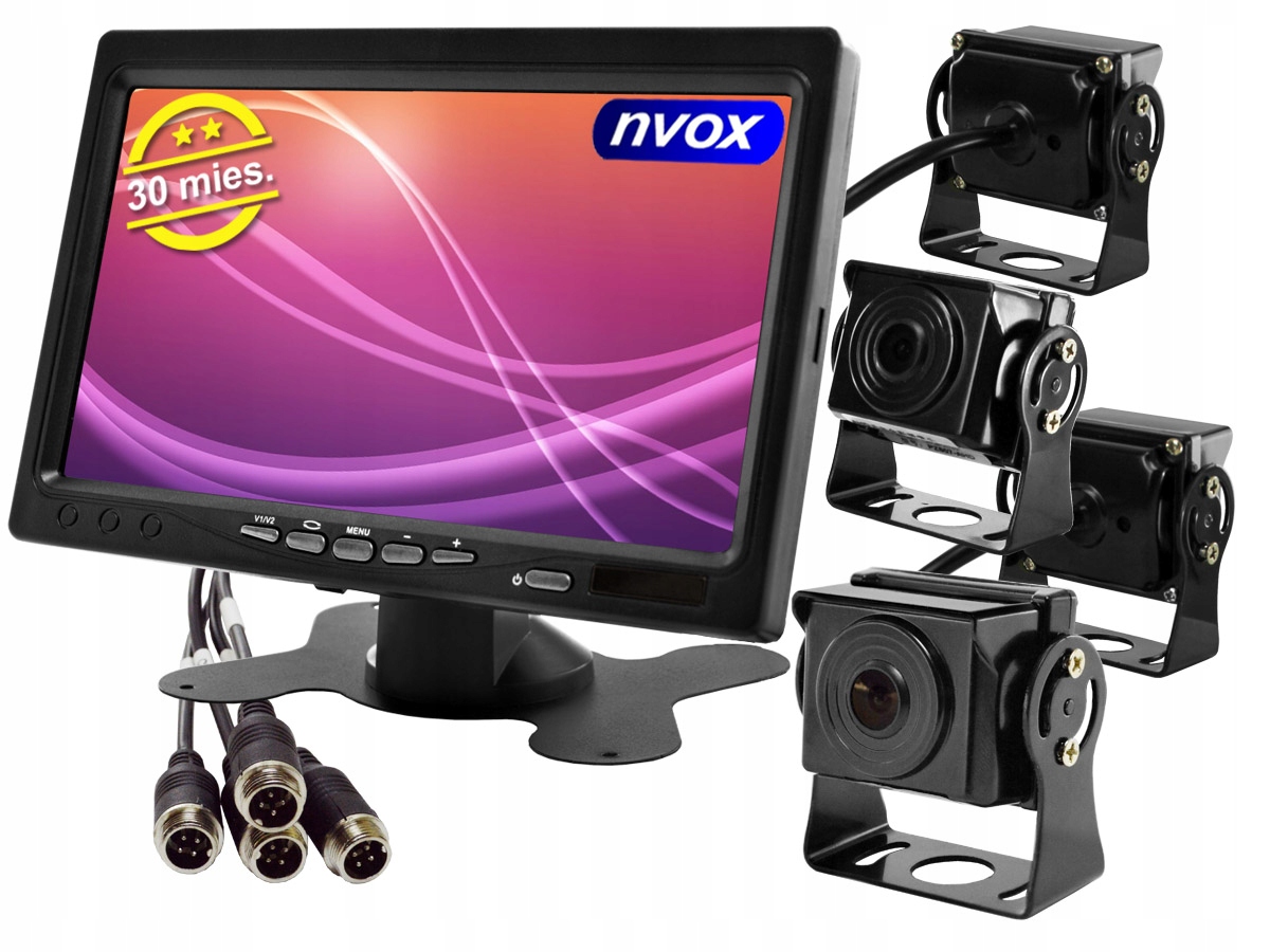 MONITOR DO SAMOCHODU 7 CALI 12/24V 4 KAMERY ZESTAW