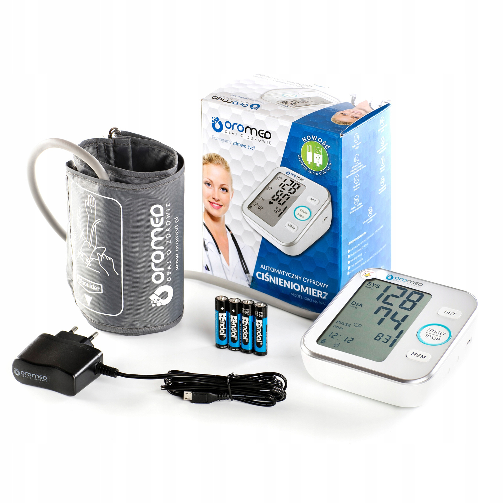 OROMED - ORO-N6 BASIC — это современный электронный тонометр, использующий осциллометрический метод измерения с использованием технологии FUZZY LOGIC. Тонометр отличается высокими показателями измерения. точность - эквивалент точности измерения, выполняемого путем аускультации с помощью механических сфигмоманометров квалифицированным медицинским персоналом. Эта точность подтверждена клиническими испытаниями. Выполнить точное измерение артериального давления чрезвычайно просто – для этого необходимо нажать всего одну кнопку. Эргономичный БОЛЬШОЙ ЖК-дисплей обеспечивает легкое считывание результата измерения.