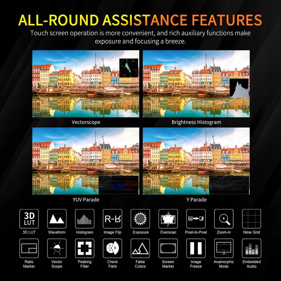 seelforld S7-это 7-дюймовый монитор предварительного просмотра с разрешением 1920 × 1200 пикселей, оснащенные сенсорным экраном ips с яркостью 1600 CD/M² , что обеспечивает превосходную видимость даже на полном солнце. Монитор поддерживает сигналы до dci 4K с помощью 12G-SDI выходов и выходов и HDMI 2.0 , обеспечивая гибкое соединение с различными устройствами. Кроме того, S7 предлагает такие функции, как 3D LUT Service , waveform , vectorscope и hdr , вспомогательные специалисты в точном мониторинг изображения. Твердое алюминиевое жилье обеспечивает долговечность в условиях труда