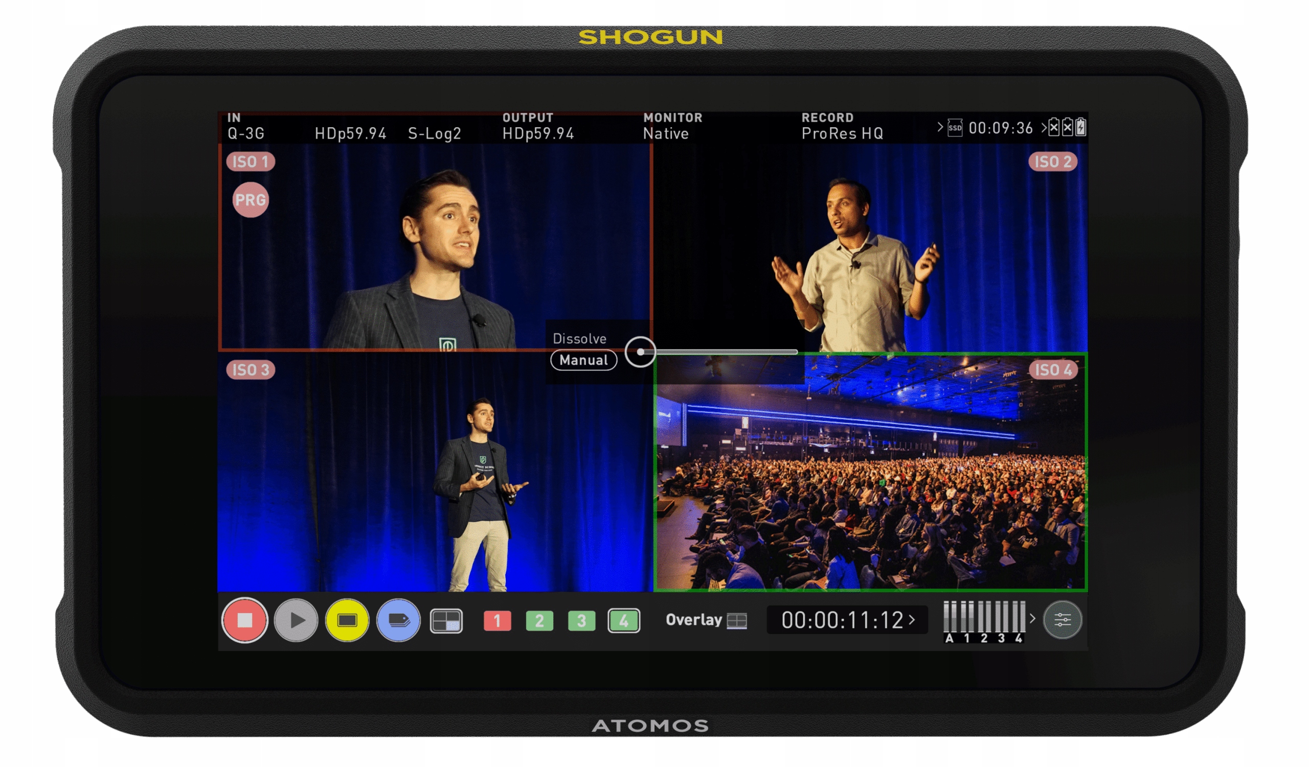 Воспользуйтесь преимуществами четырех входов SDI, позволив Shogun Classic работать в качестве портативного переключателя и устройства записи четырехкамерного изображения для многокамерной съемки. Записывайте до четырех потоков 1080p60 одновременно в виде отдельных файлов ISO, переключая и фиксируя ключевые моменты в реальном времени простым касанием экрана. Shogun Classic также может записывать пятый «программный» канал из коммутируемого сигнала, отображая полученный микс в реальном времени (через HDMI или SDI). Асинхронное переключение устраняет необходимость в дорогих синхронизированных источниках, позволяя использовать более доступные камеры.