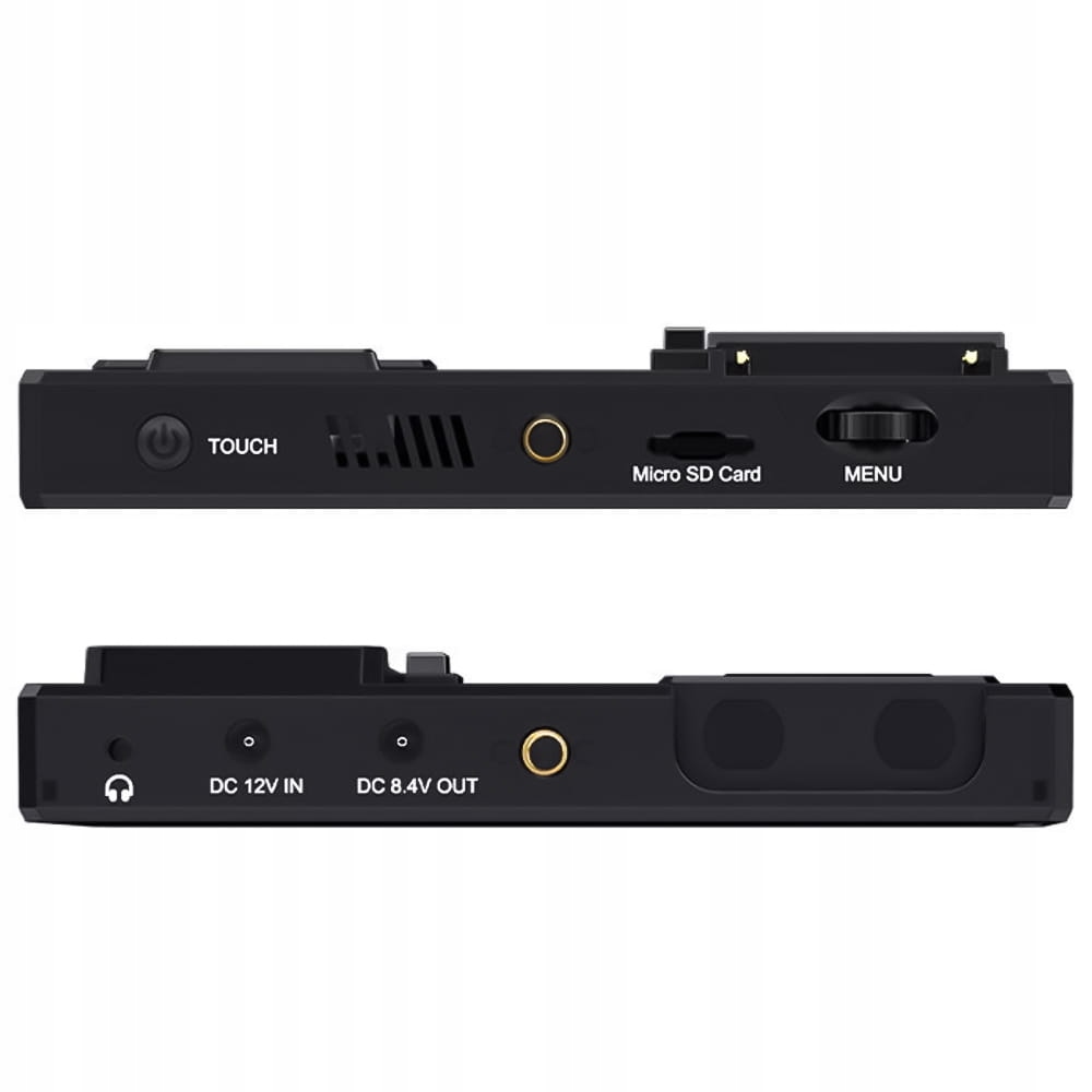 Монитор имеет два порта HDMI — входной и выходной — и разъем для наушников 3,5 мм. Порт micro SD, расположенный на боковой стенке, используется для импорта пресетов LUT. На боковой стороне монитора также имеется порт USB 2.0 для подключения внешнего носителя информации. Изображение сохраняется с разрешением 1080p @ 30 Гц в формате MP4. Файл может содержать примененные пользователем 3D LUT-эффекты, благодаря которым можно удобно создавать практически готовые материалы для использования в социальных сетях. Время записи зависит от емкости носителя. Пример 60-минутной записи занимает примерно 1,8 ГБ.