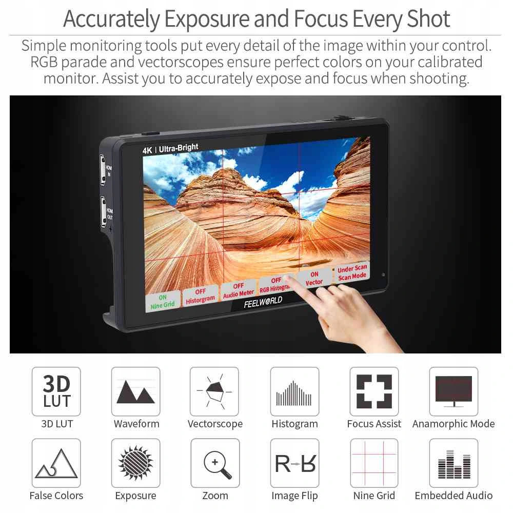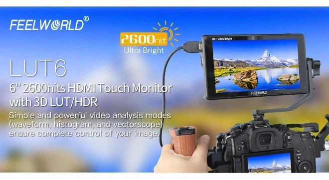Монитор для просмотра LUT6 оснащен входом 4K HDMI и циклическим выходом. Это позволяет отображать живое видео на нескольких дисплеях одновременно, сохраняя при этом исходное качество видео.