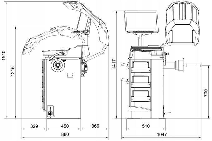 - измерительный рычаг для автоматического считывания диаметра колеса и расстояния от балансировочного станка