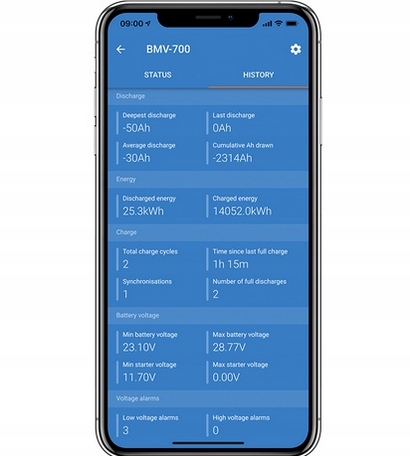 Благодаря встроенному Bluetooth-соединению BMV Smart готов к эпохе Интернета вещей (IoT). Поскольку большинство других устройств Victron Energy также оснащены Bluetooth, беспроводное соединение между ними упрощает установку системы и максимально повышает ее эффективность.