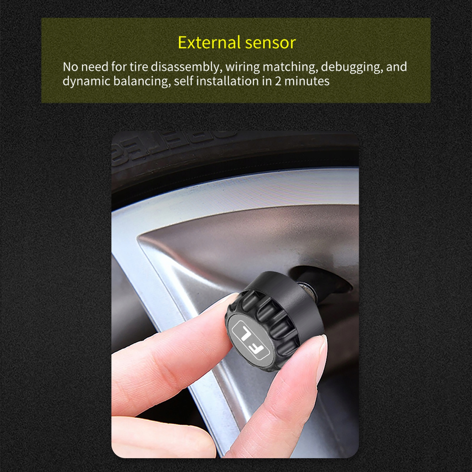 4. Быстрая установка: внешняя конструкция датчика позволяет завершить установку в течение двух минут без удаления шин. Пропустите сложные шаги и легко добавьте «защиту безопасности» в свой автомобиль - время и энергия!