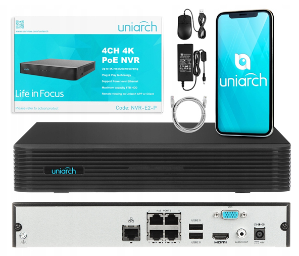 - 1x NVR-рекордер с POE-NVR-104E-P4