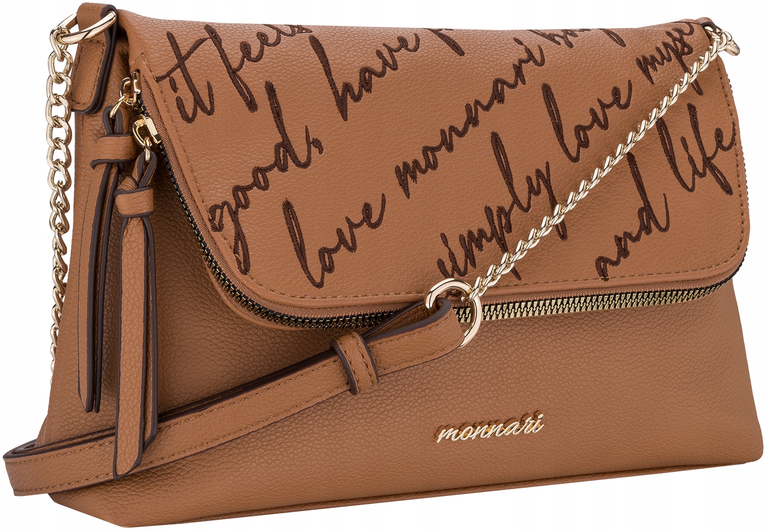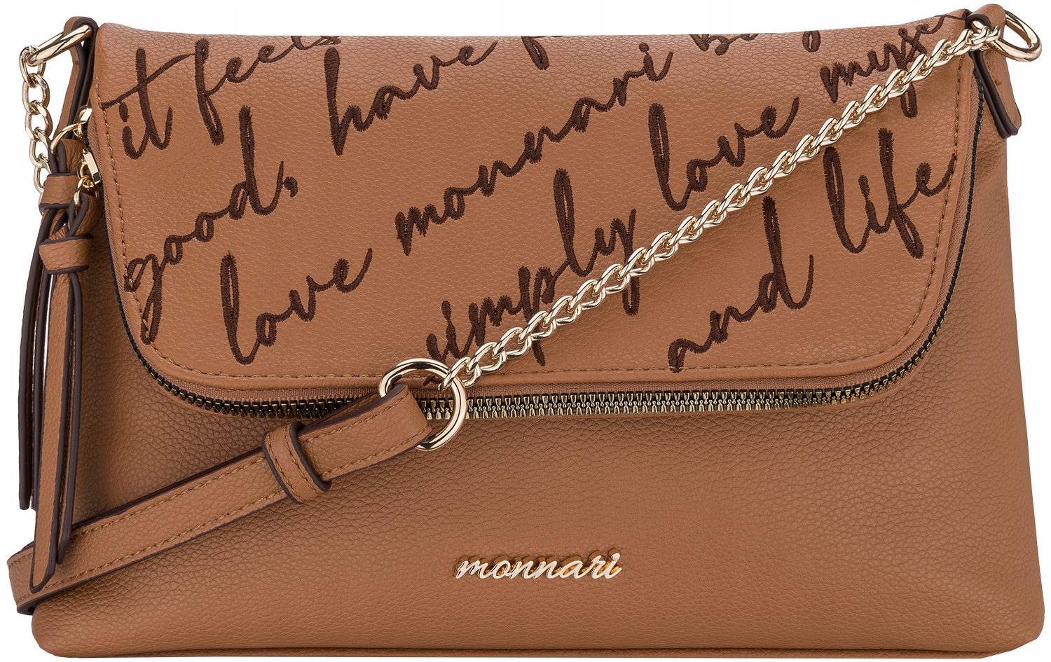 MONNARI CAMEL MESSAGE СУМКА З ВИШИТИМ ЛОГОТИПОМ