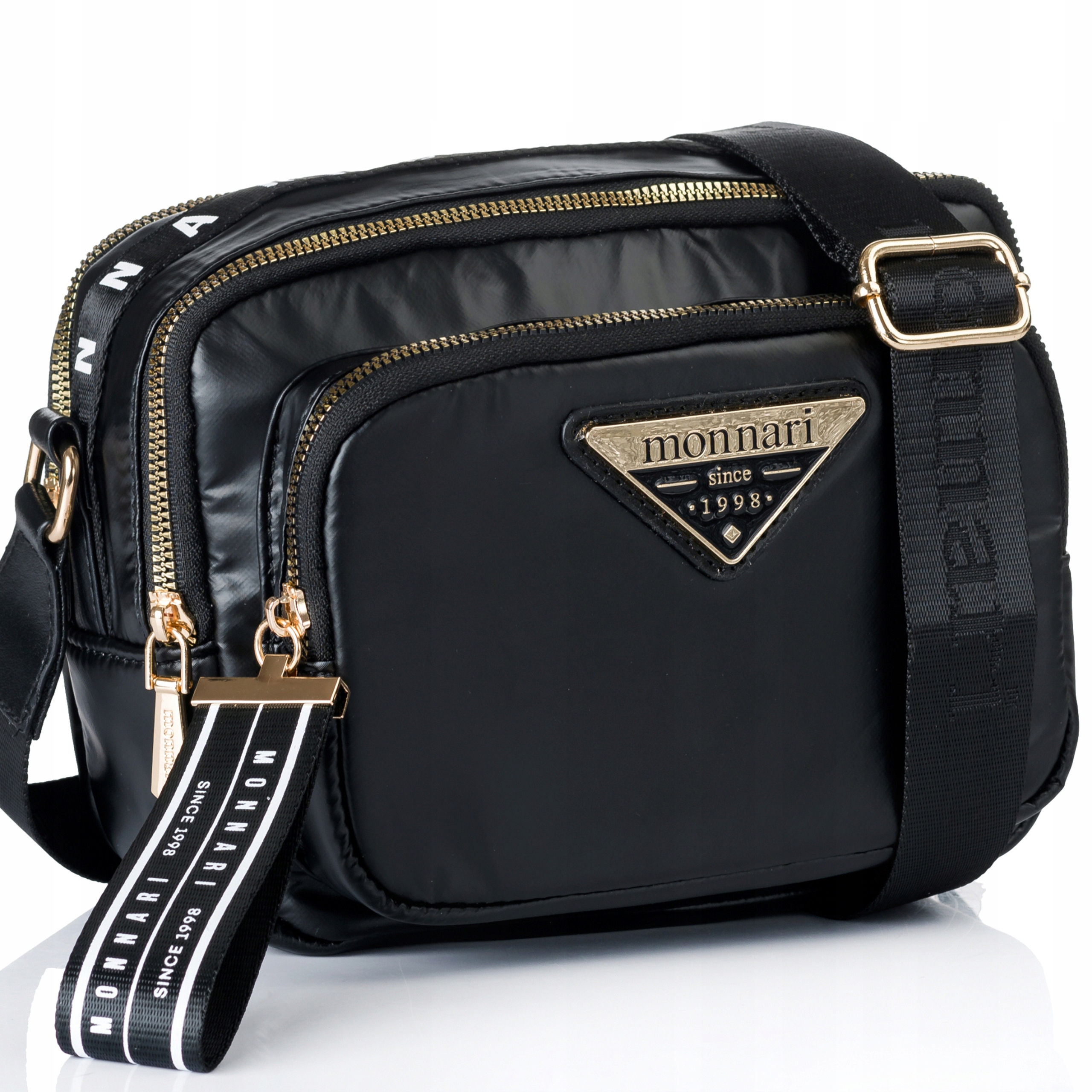 MONNARI Torebka na ramię LISTONOSZKA Pojemna DWUKOMOROWA PASEK LOGO PREMIUM