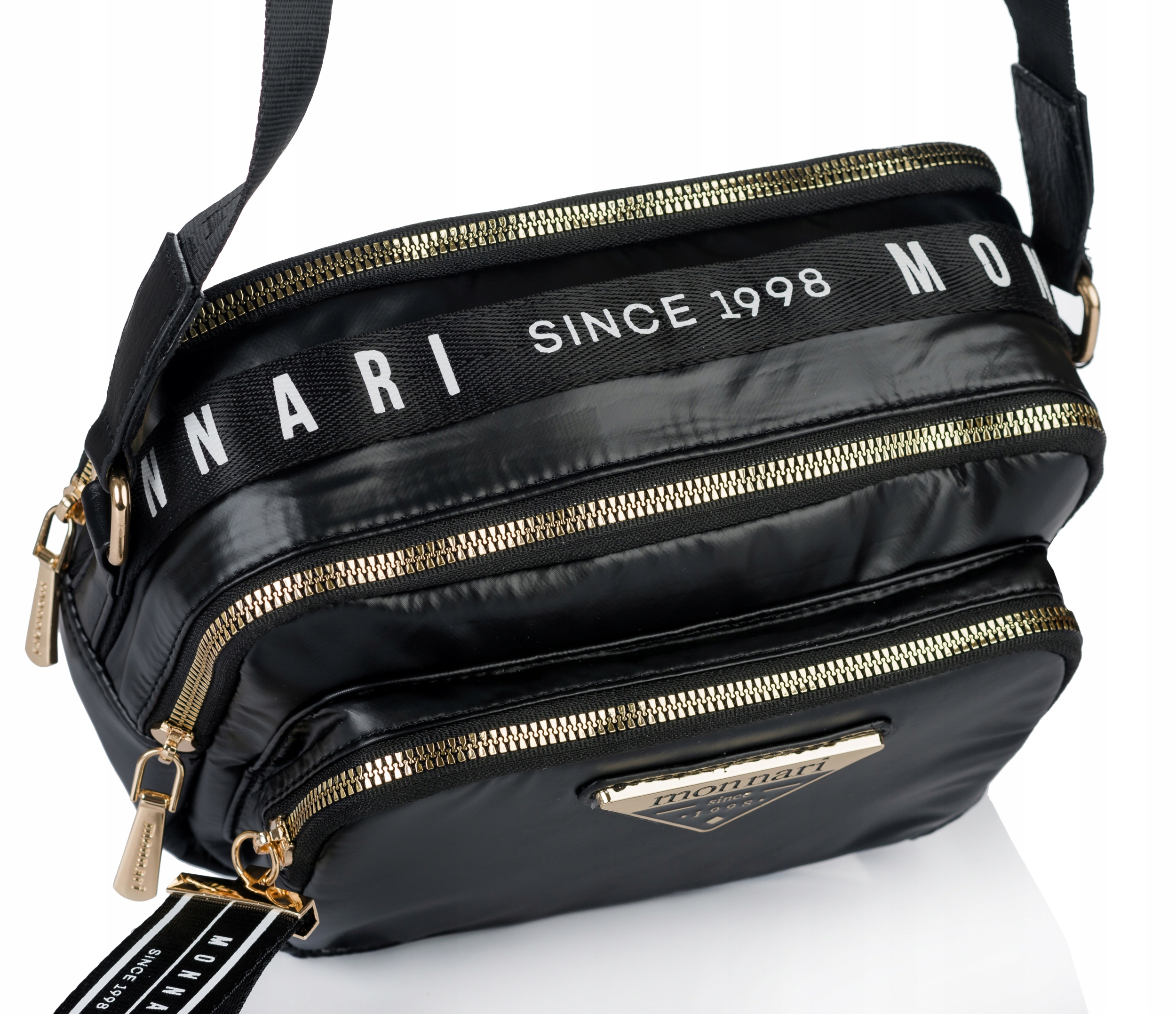MONNARI Torebka na ramię LISTONOSZKA Pojemna DWUKOMOROWA PASEK LOGO PREMIUM