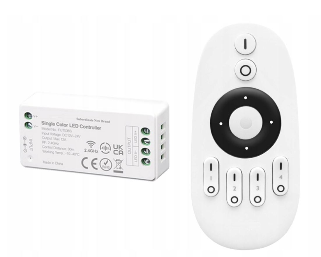 Пульт дистанционного управления работает в 4-зонном стандарте, а отдельные контроллеры также можно группировать. Технология устройства позволяет использоватьодин пульт для многих ресиверов и управлять каждым каналом отдельно. Пульт дистанционного управления позволяет нам управлять светом от 1 до 4 зон - НЕЗАВИСИМО, и мы можем запрограммировать множество цепей освещения для каждой зоны.