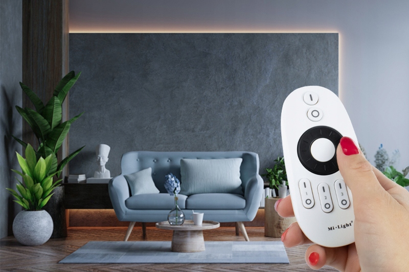 Пульт дистанционного управления позволяет вам изменять цвет света, режим освещения или яркость. Кроме того, вы можете настроить в общей сложности 4 контроллера с помощью пульта дистанционного управления, чтобы вы могли разделить свой дом на зоны и управлять каждой из них отдельно с помощью одного пульта дистанционного управления!