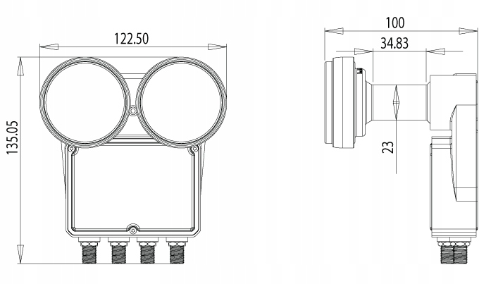 Моноблок Quad лучше всего работает с антеннами диаметром 75-85 см. Его можно установить на держатель 23 мм или 40 мм (накладка входит в комплект). Преобразователь сделан очень добротно. Корпус металлический, полностью герметичный.