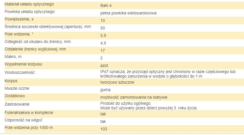 Водонепроницаемый. Увеличение: 10 раз. Диаметр объектива: 50 мм