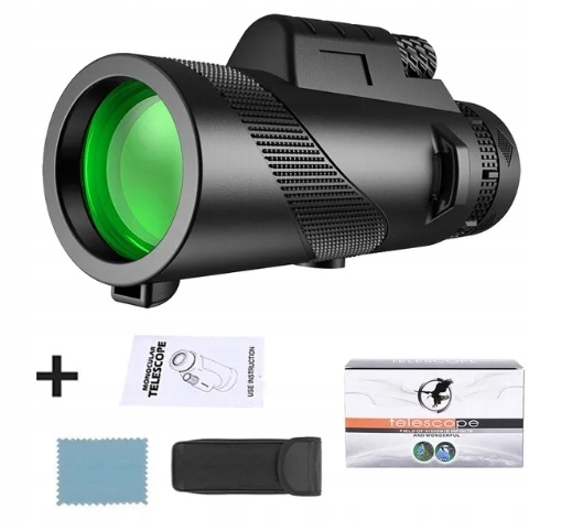 - Монокуляр оснащен большой линзой диаметром 50 мм, которая обеспечивает широкое поле зрения на расстоянии до 1000 метров. В комплект также входит штатив и подставка для телефона, которые позволяют устойчиво держать монокуляр и записывать отличные фото и видео. Объектив HD BAK4 и большой диаметр окуляра 22 мм гарантируют еще лучшее качество наблюдения.