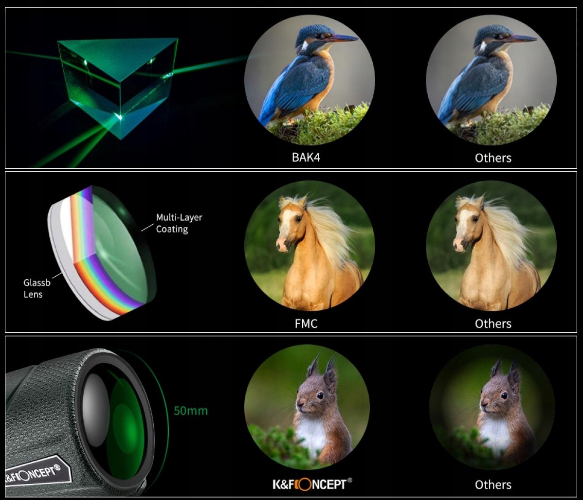 Monocular Brand K & F Concept является хорошим предложением для людей, которые ищут профессиональный аксессуар для общего использования, в основном для наблюдения за объектами далеки, например, дикие животные.