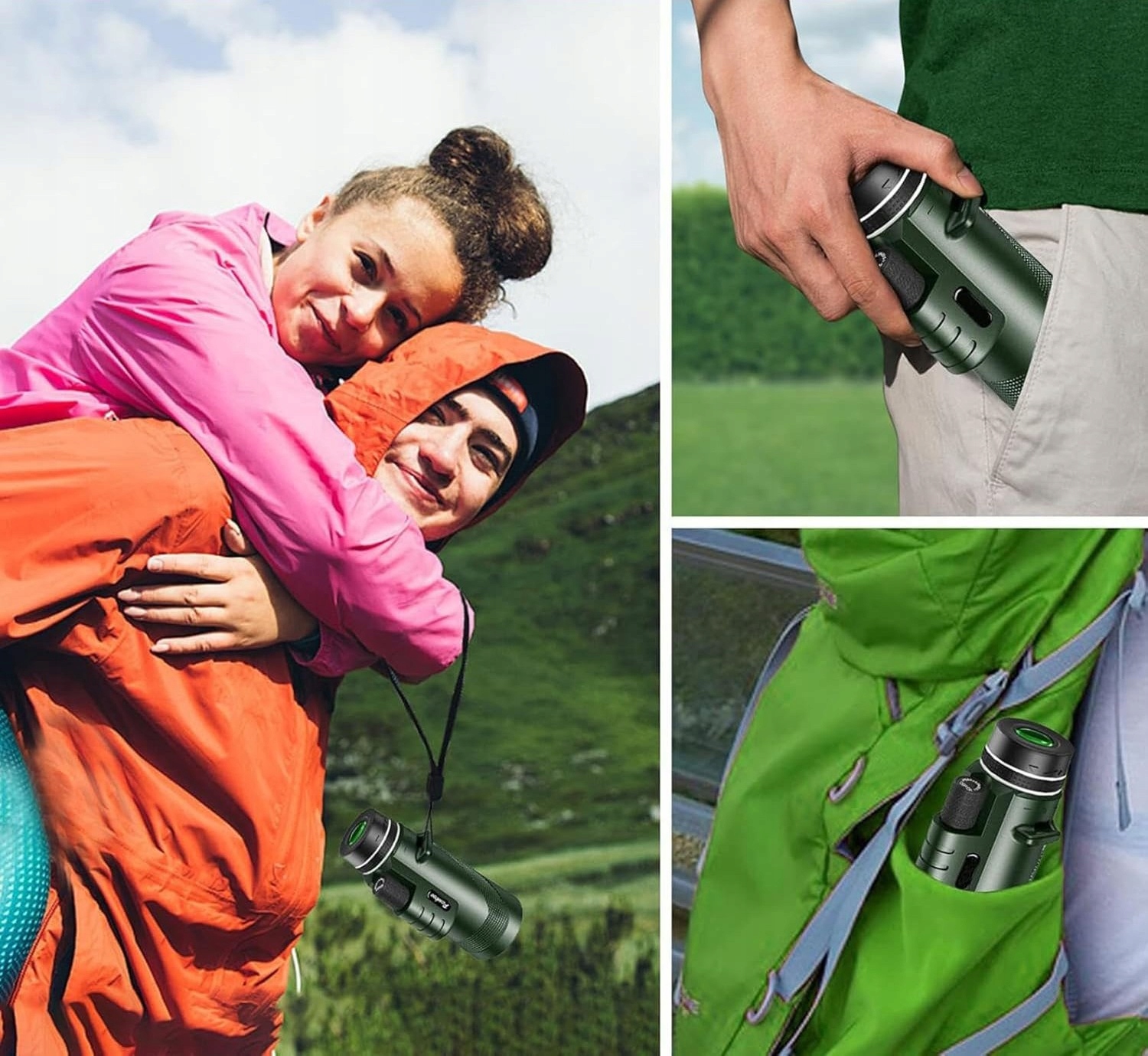 ➡ Идеально подходит для снаружи: этот монокуляр является идеальным аксессуаром для всех, кто любит проводить время на свежем воздухе. Он был специально разработан для энтузиастов активности на открытом воздухе и идеально подходит для различных мероприятий на свежем воздухе, включая охоту, кемпинг, альпинизм, пешеходные походы и даже водные виды спорта. Благодаря этому универсальному монокуляру вы можете наблюдать за животными, наслаждаться видами, контролировать окружение и даже участвовать в концертах и мероприятиях.