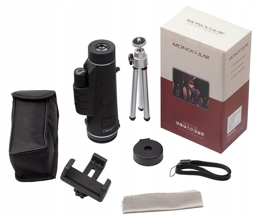 В комплекте:монокуляр COMET LR-084, колпачки, чистящая ткань, ремешок, чехол, штатив и адаптер для телефона