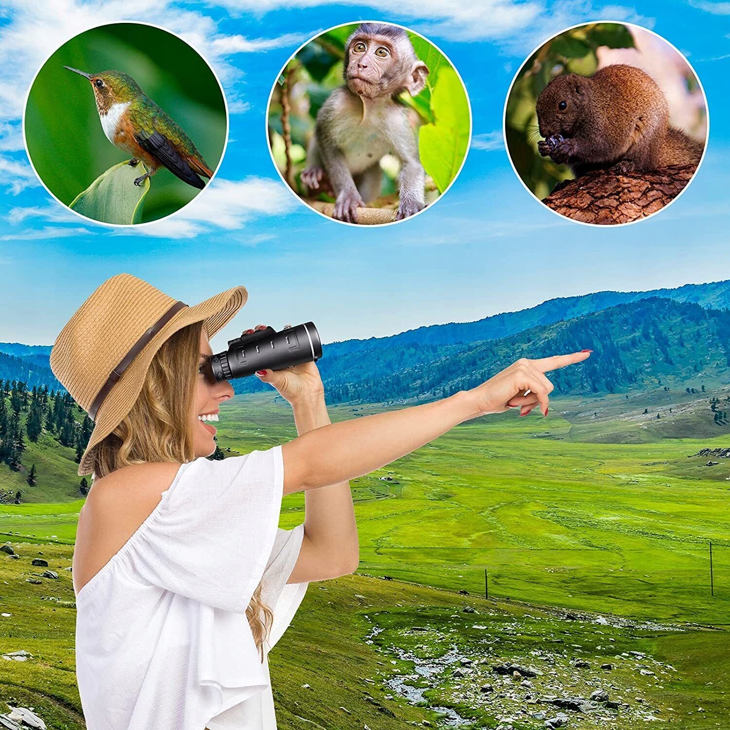 ★ Фокус одной рукой, водонепроницаемой и туман: Эргономичный дизайн поможет вам быстро и внимательно сосредоточится с одной рукой. Прочная резиновая броня с полосками делает его удобным для использования, не -сластичная ручка и длинная внешняя защита руки. Водонепроницаемый азот, заполненный IPX7, с туманным покрытием и герметичными оптическими элементами уплотнительного кольца, может предотвратить влагу, пыль и загрязнение и все время удерживать их. 80 раз и монокулярная линза с диаметром 100 мм , которые могут обеспечить четкие и яркие изображения и наслаждаться красотой расстояния. Монокулярный на холме имеет широкое поле зрения, которое обеспечивает лучший обзор приключения на открытом воздухе. Вы можете свободно восхищаться птицами, охотой, блужданием, кемпингом, путешествиями, дикой природой, ландшафтами и т. Д. Наши бинокли имеют функцию плохого освещения, которое может помочь вам наблюдать за вещами при слабом освещении (вы не можете видеть ничего в совершенно темной среде), обеспечивая удивительный визуальный опыт.