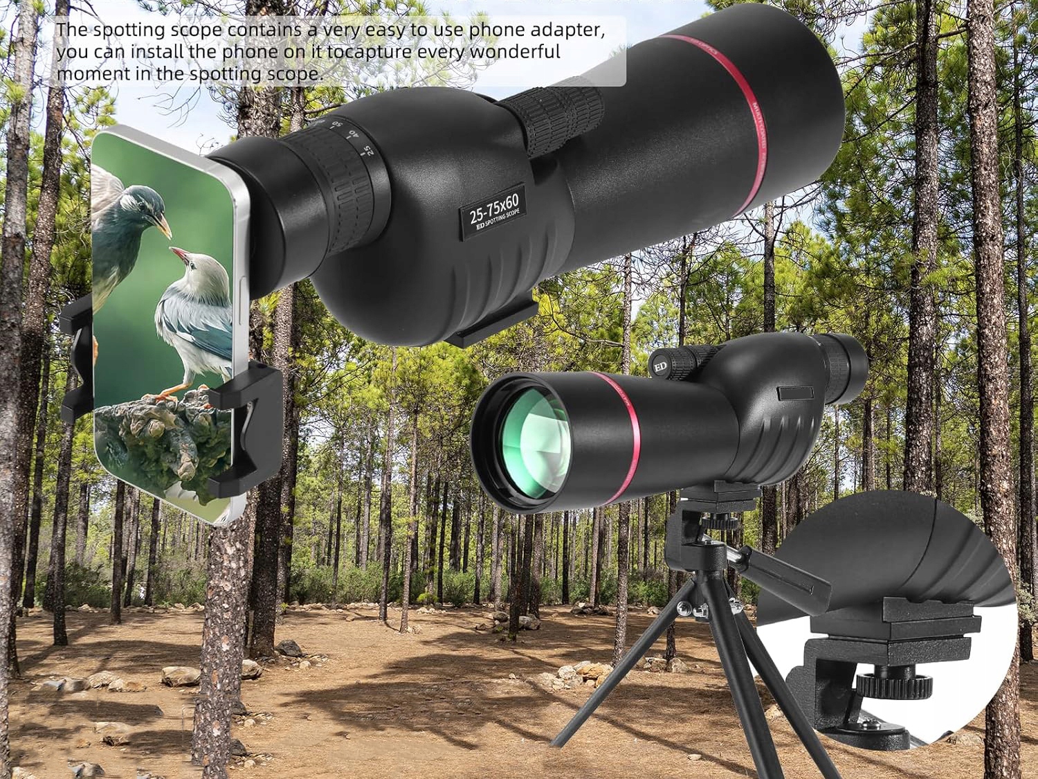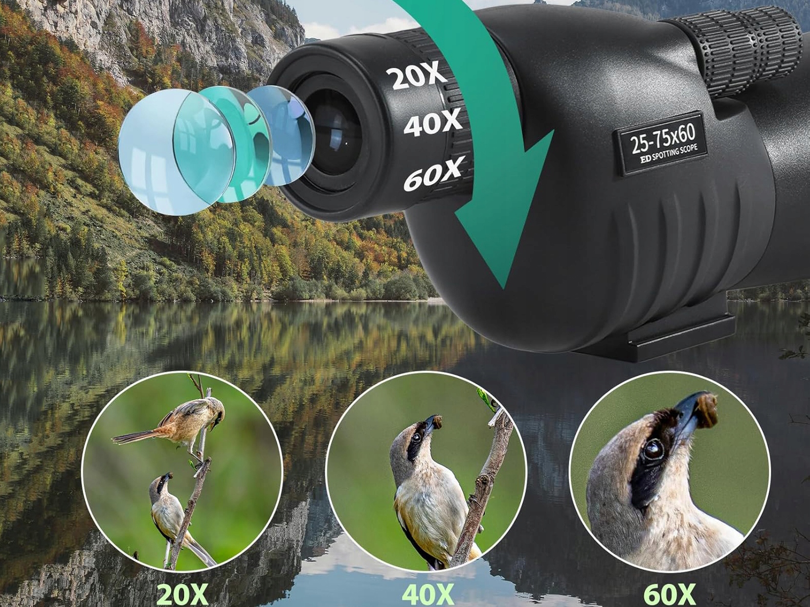 водонепроницаемый USOOD Lunette 25-75x60 мм-хороший выбор для энтузиастов на открытом воздухе и наблюдателей за птицами.