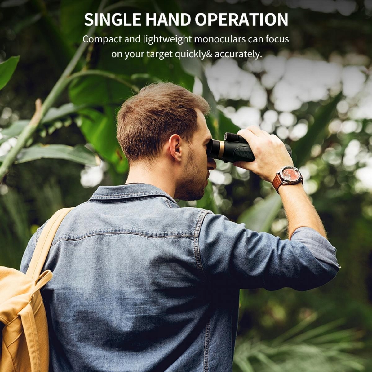 Высокое увеличение, четкое изображение, плавная регулировка фокуса, компактный размер и водонепроницаемость — основные характеристики, отличающие монокуляр K&F.