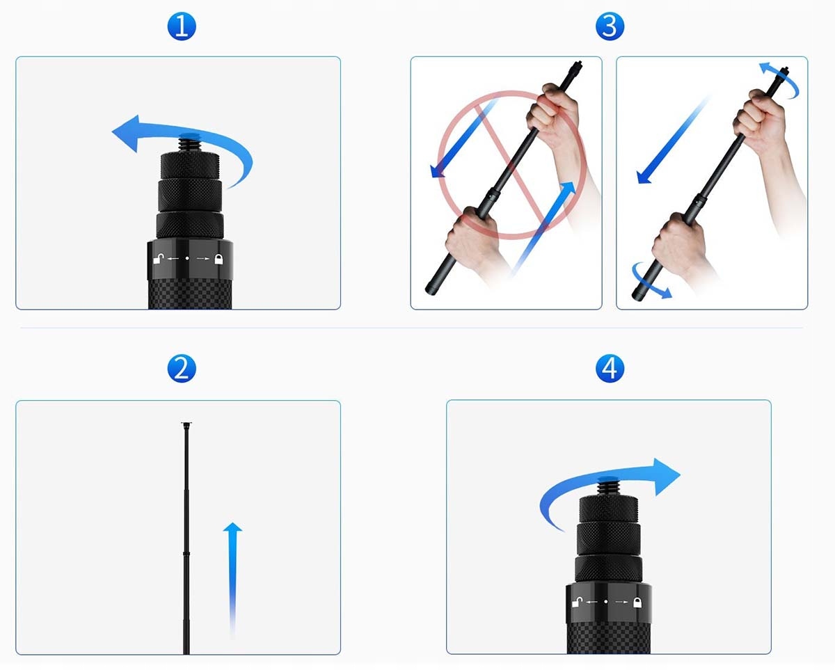 ⭐ Карбоновая телескопическая штанга для палки для селфи Telesin длиной 1,16 м для камер DJI GoPro