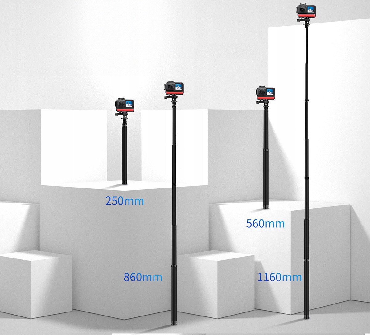 - Размеры: 250–1160 мм (телескопический)