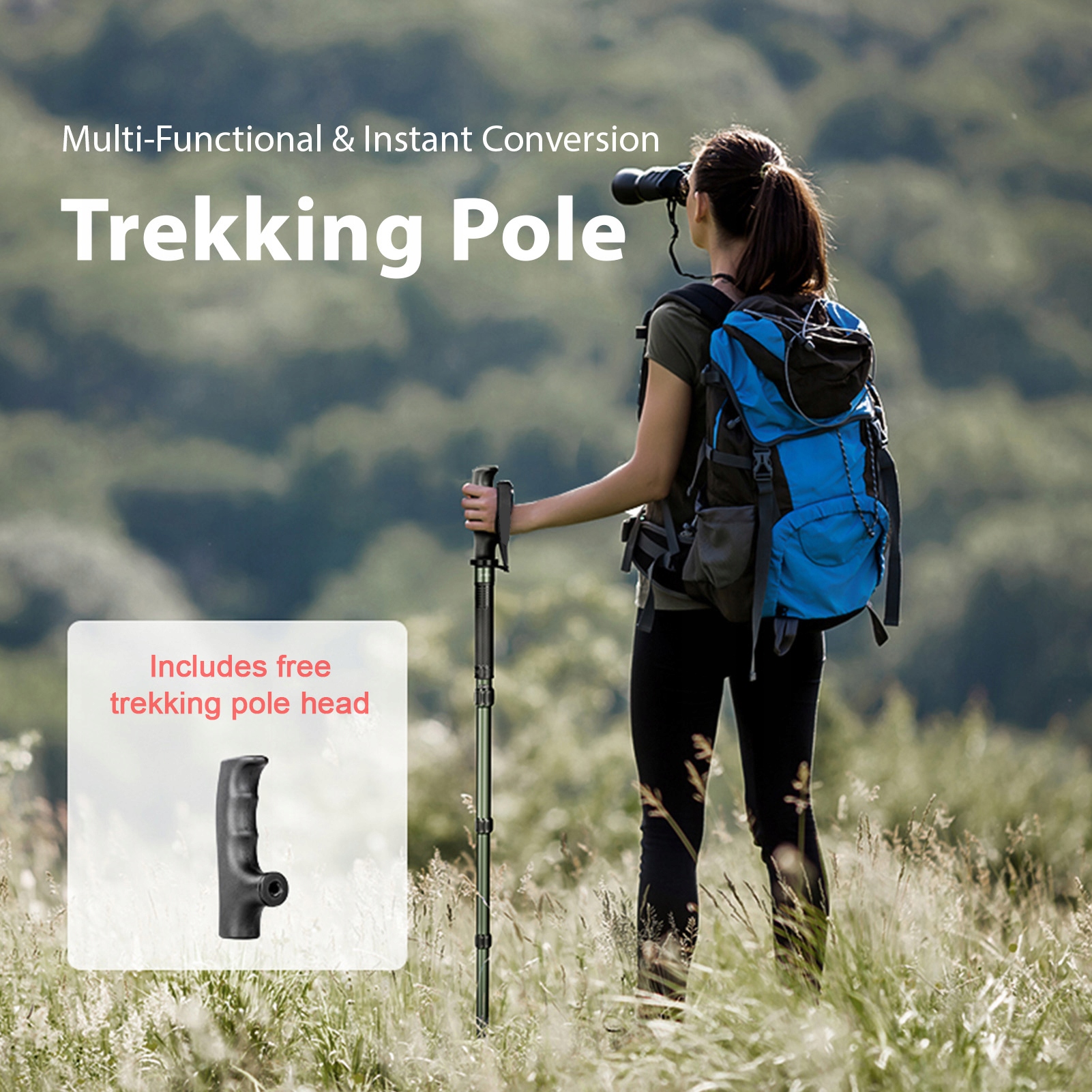 5. В случае фотографий и походов: эта моноподная фотография предназначена не только для фотографии - она также удваивается как натощак! Благодаря прикрепленной скалоладной головке вы можете превратить эту подставку из моноподной камеры в туристическую палку. Съемные шипы ног обеспечивают дополнительную адгезию на грубых поверхностях, благодаря которой он идеально подходит для приключений на открытом воздухе и фотографий дикой природы.