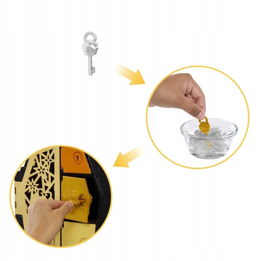 - Время открывать секреты! Удалите черную краску Color Reveal с четырех клавиш и откройте четыре соответствующих отделения, чтобы обнаружить спрятанные сюрпризы.