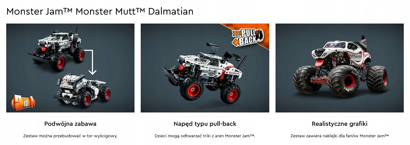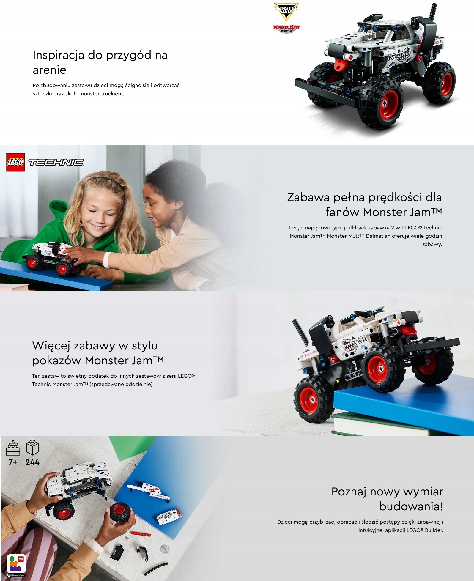 Набор LEGO® Technic Monster Mutt™ «Далматин» — это не просто игрушка, это вход в захватывающий мир Monster Jam ™ с возможностью воссоздавать свои собственные шоу монстр-траков.