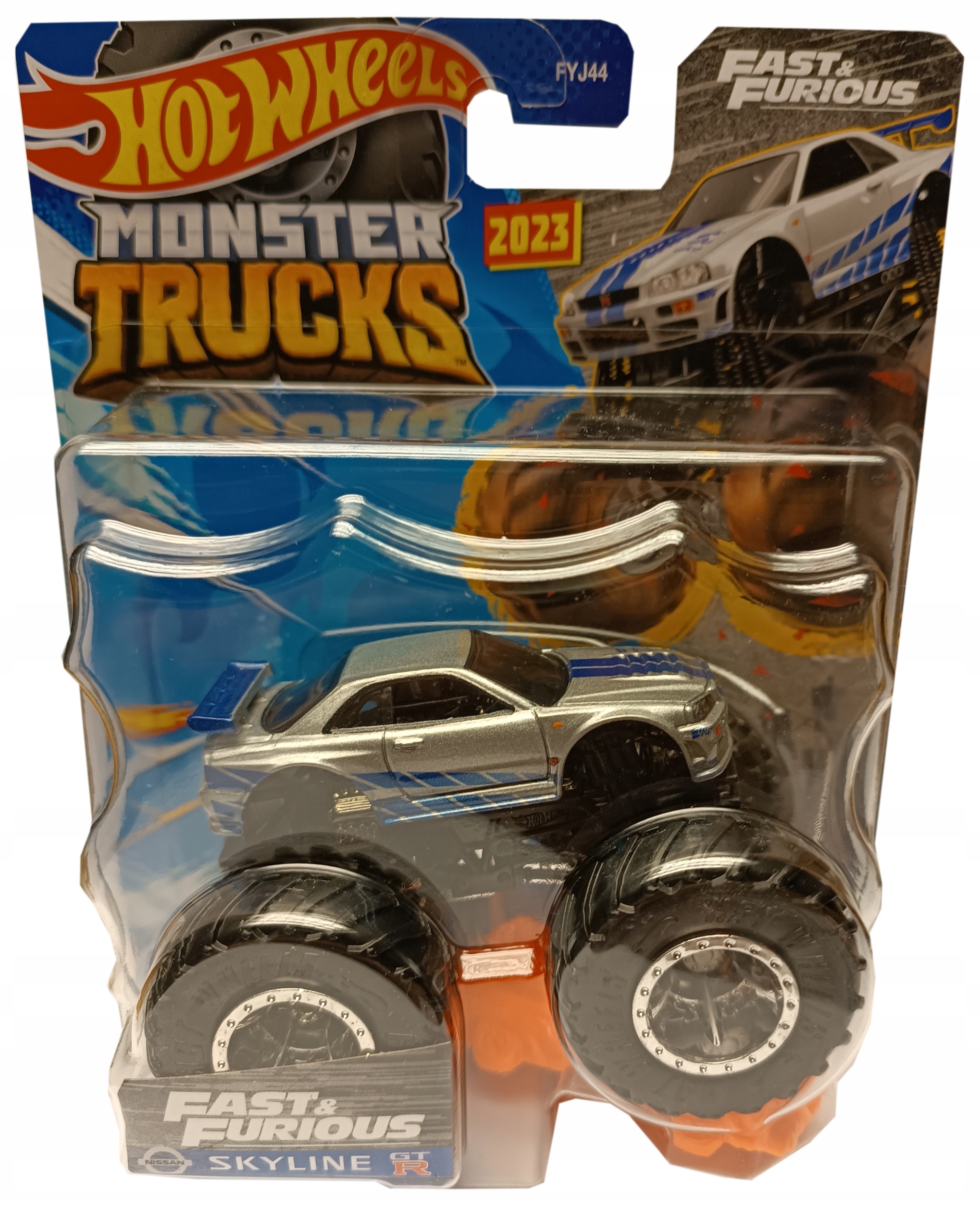 Еще один автомобиль из серии фильмов «Форсаж» входит в мир Hot Wheels Monster Trucks — Серебристый Nissan Brian's Skyline GTR из второй части «Форсажа»