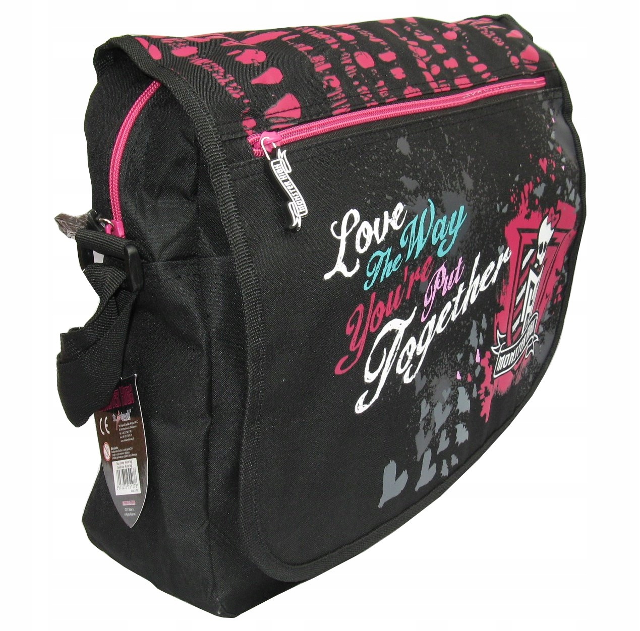 Monster High - большая сумка для защелки. Он имеет главную камеру с лопастью на липучке, внутри большого кармана и внутренних карманов и большой карман на клапане, закрепленном на молнии и карманом под клапаном, видимым на фото. Сумка идеальна для книг, для дополнительных занятий и для бассейна, а также для предстоящих поездок и праздничных поездок