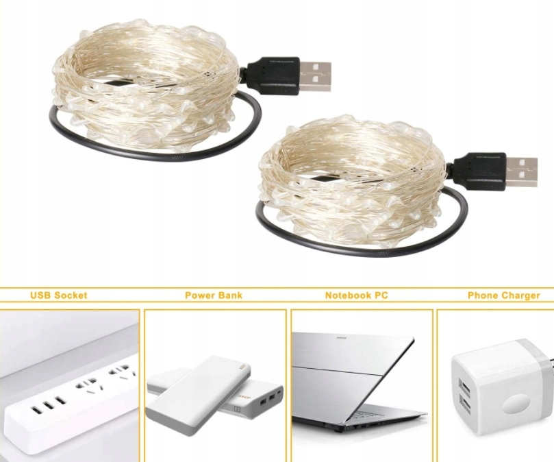 МОНТАЖ ЛАМПИ 200 LED MICRO USB, теплий білий.