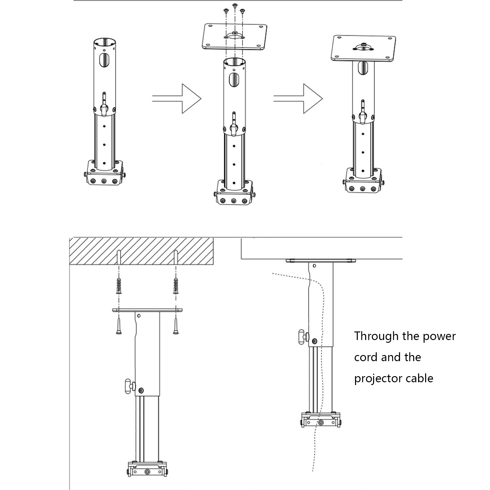 3. Этот кронштейн является общим для большинства проекторов. У сборка имеет 4 регулируемых рычага, монтажного паука, которые можно расширить, чтобы адаптироваться к различным способам установки проектора.