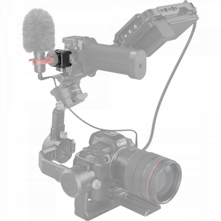Крепление для стабилизаторов DJI Ronin RS2 и RSC2 с помощью зажима NATO. Крепление можно закрепить с любой стороны стабилизатора с помощью зажима НАТО, который затягивается с помощью ручки и легко отсоединяется с помощью системы быстрого крепления. Он имеет резьбовые отверстия 1/4 дюйма, отверстие ARRI 3/8 дюйма и крепление для холодного башмака. Встроенное крепление для холодного башмака можно использовать для крепления микрофона, приемника беспроводной аудиосистемы или лампы.