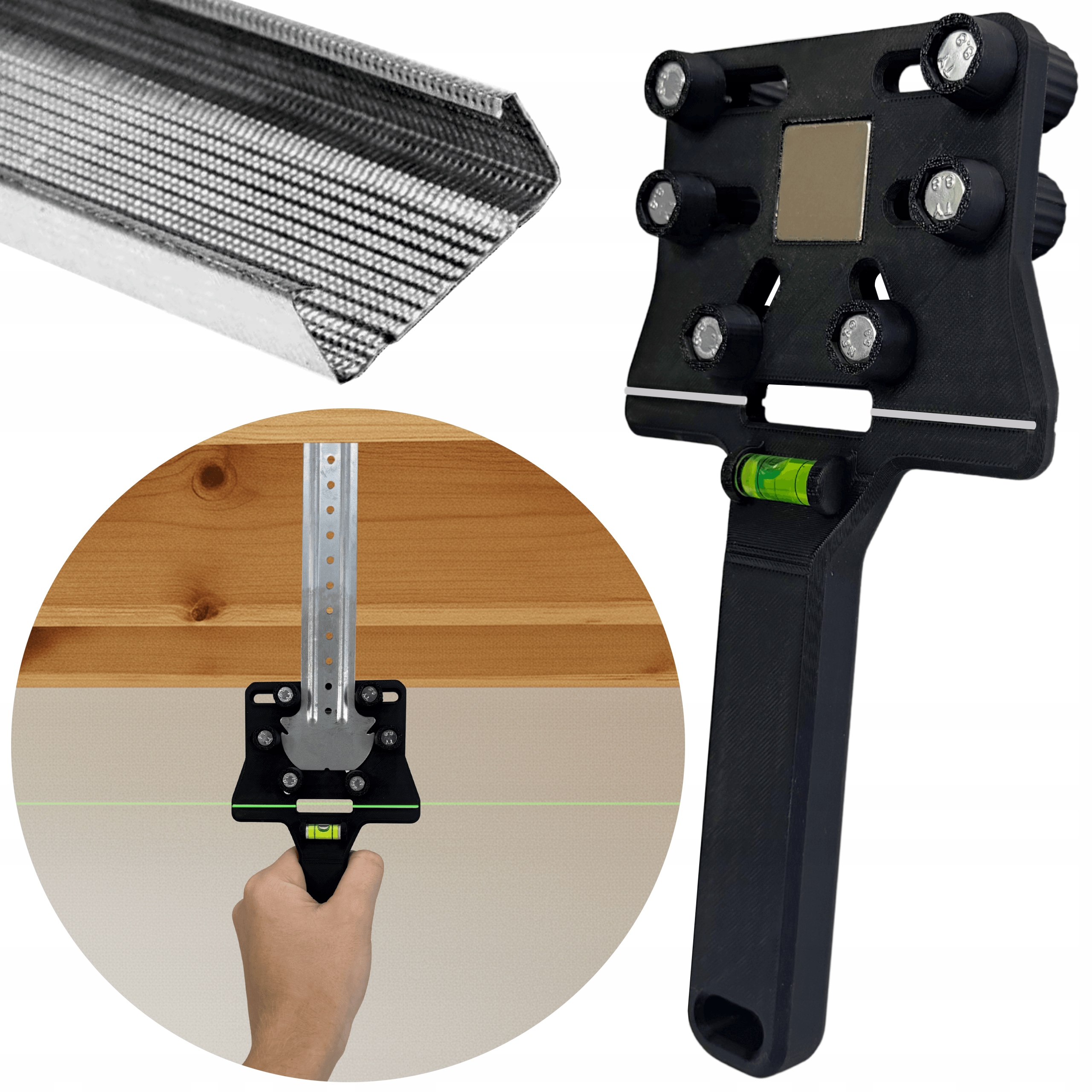 Держатель предназначен для быстрой и точной установки грибовидных подвесов в подвесных потолках, а также на скатных потолках и в чердачных помещениях. Встроенный пузырьковый уровень обеспечивает идеальный уровень при завинчивании элементов, исключая поправки. На корпусе имеется четкая линия для направления лазерного луча, что облегчает перенос уровня по всей поверхности. Инструмент поддерживает работу сборочных бригад и любителей DIY, сокращая время внедрения.