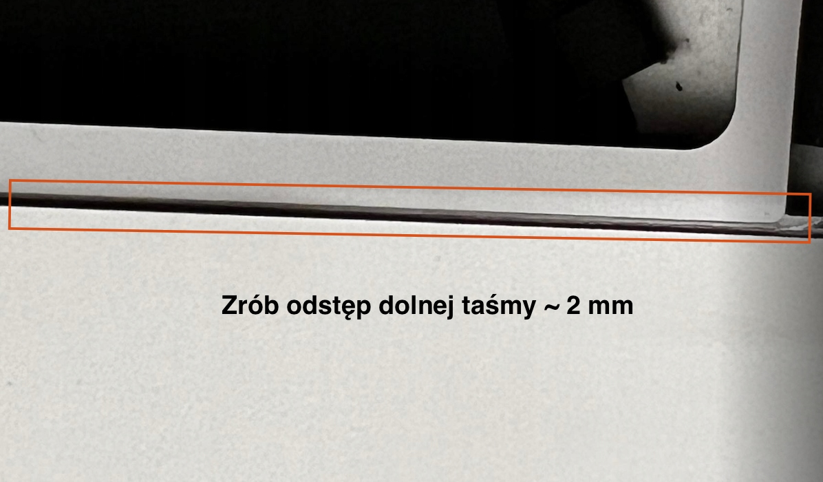 • отсутствие зазора нижних лент от нижнего края( нижние ленты должны иметь расстояние от нижнего края около ~2 мм) если такого расстояния при наклейке матрицы нет (делаем под углом, она загибается немного вниз и, если места нет, то перекрывает нижний край) такая лента в дальнейшем работает на удаление остальных лент.
