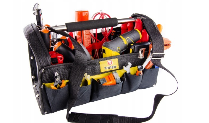t topex 19 ”инструмент Orba (ссылка 79r444) из пластика, устойчивая к разрушению, 42 x 22 x 24 см. Форманы внутри и снаружи мешка, создают инструменты для организации. Он имеет сильные и удобные двойные ручки с переносом и ремень. Установленное дно позволяет переносить тяжелые объекты. Topex направлен на DIY