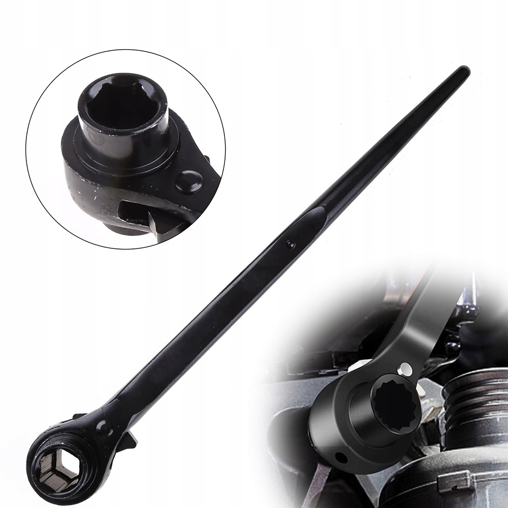 Универсальный профессиональный ключ для строительных лесов. Идеально подходит для сборки и разборки строительных лесов. Изготовлен методом ковки, закален и вороненый. Ключ устойчивый к коррозии. Длинный рычаг ключа позволит открутить застрявшие соединения. Заостренный кончик поможет поддеть и разложить демонтированные элементы. Ключ оснащен приклепанным переключателем направления вращения влево/вправо. Благодаря отверстию в ручке ее можно прикрепить и зафиксировать при работе на высоте.